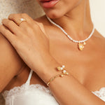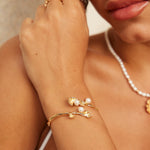 Wave Pearl Adjustable Bracelet - 925 Sterling Silver (Silver Tone / Gold Tone)
