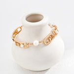 Adjustable Natural Pearl Bracelet in Sterling Silver with Dual-Tone Finish
