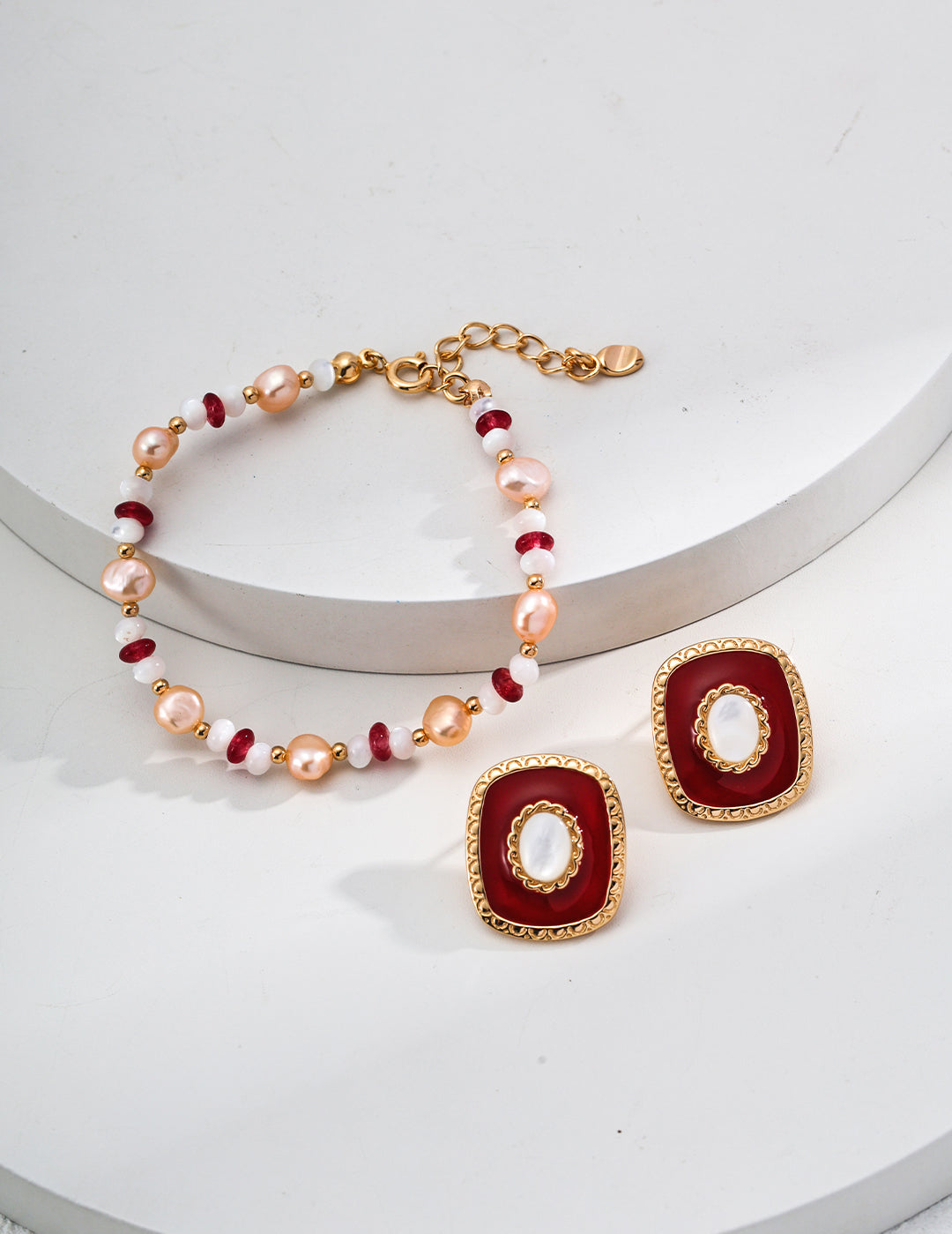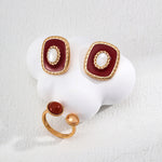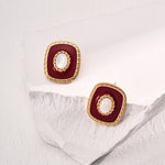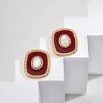 Red Enamel and Shell Earrings in Retro Gold Sterling Silver