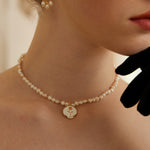 Adjustable Rose Pendant Necklace with Enamel and Natural Pearl in Retro Gold Silver