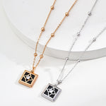 Adjustable Square Black Onyx and Zircon Necklace in Dual-Tone Sterling Silver