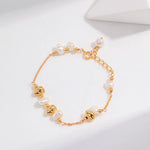Adjustable Pearl Bracelet - 925 Sterling Silver (Vintage Gold Tone)